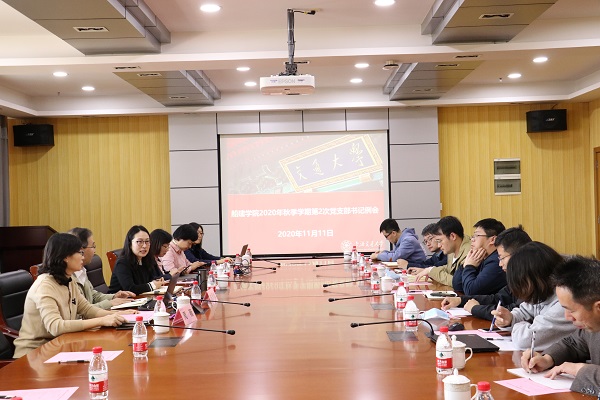 11月11日,探花 2020年秋季学期第2次党支部书记例会召开,校党委教师工作部常务副部长、人力资源处副处长陈贤峰受邀出席会议,院党委书记周薇、副书记王喜芳、党政综合办主任朱惠红,各教工党支部书记、支委参加会议。会议由王喜芳主持。