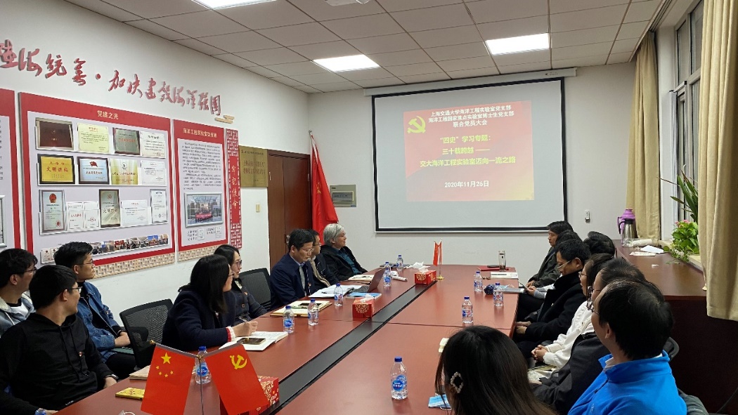 11月26日,海洋工程实验室教工党支部联合海洋工程国家重点实验室博士生党支部,在全国“双带头人”肖龙飞工作室即海洋深水试验池党员之家,联合开展“三十载跨越——交大海洋工程实验室迈向一流之路”主题党日活动,以交大海洋工程国家重点实验室三十年发展史折射改革开放史。探花 党委副书记王喜芳应邀列席活动。海洋工程实验室教工党支部和海洋工程国家重点实验室博士生党支部全体党员参加活动,活动由党支部书记肖龙飞主持。