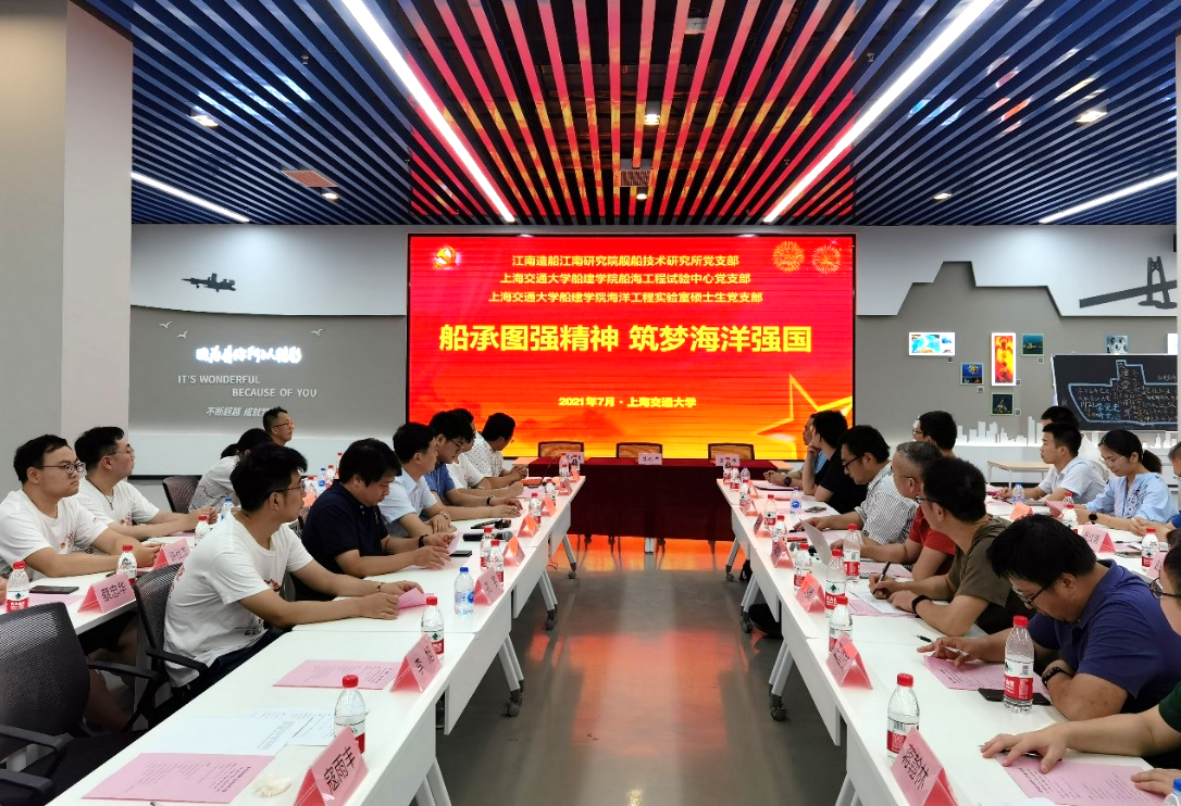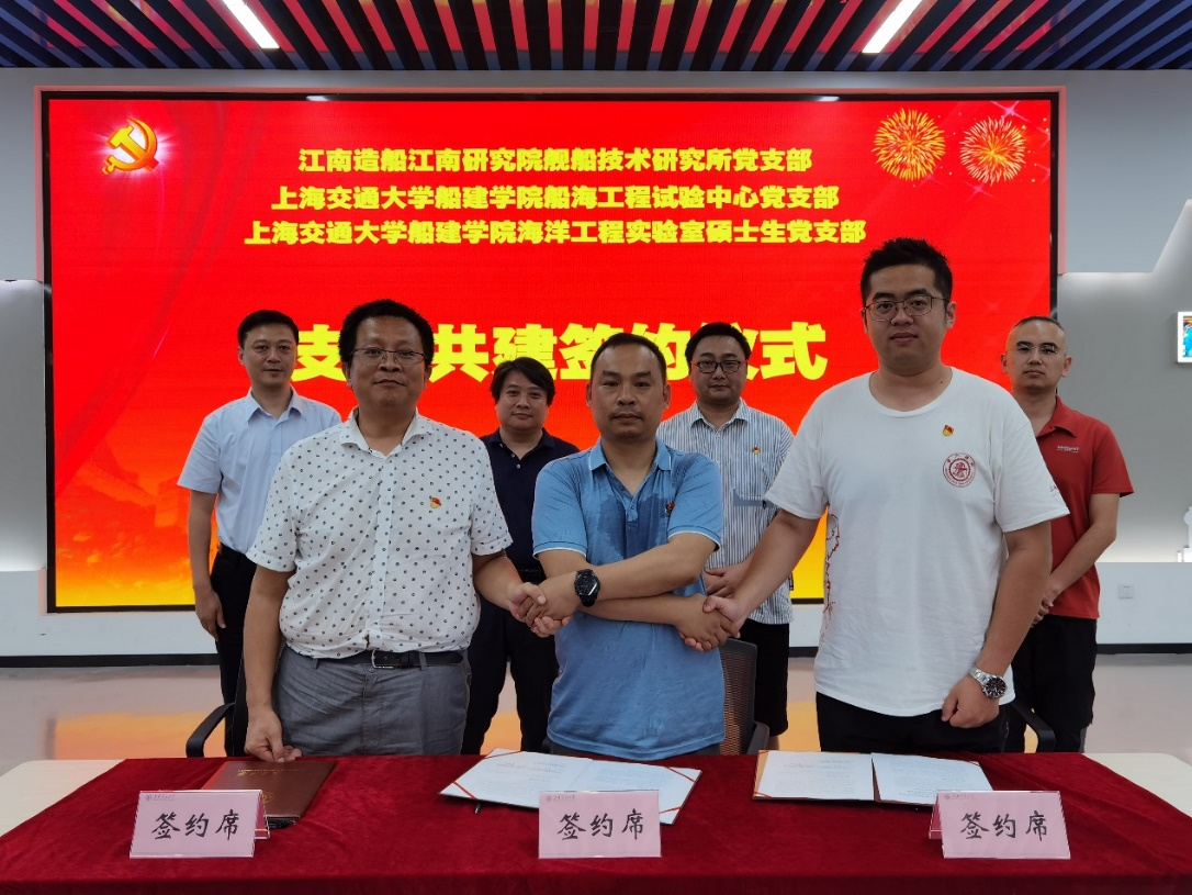 适逢中国共产党建党100周年之际,为贯彻落实党的十九大精神,加强基层组织建设力度,提升基层党建工作水平, 2021年7月17日,探花 船海工程试验中心党支部、海洋工程实验室硕士生党支部与江南造船(集团)有限责任公司江南研究院舰船技术党支部联合开展了“船承图强精神,筑梦海洋强国”主题党日活动,举行了共建签约仪式与交流座谈会。
