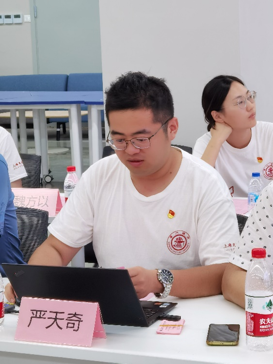 李俊介绍了船海工程试验中心党支部在支部建设、试验能力建设等方面开展的工作,党支部充分发挥战斗堡垒作用,协力同心建设国际一流船海工程试验平台,服务创新人才培养、前沿科学探索、关键技术突破和工程装备研发。严天奇介绍了海洋工程实验室硕士生党支部党建科研情况,支部对标国家级样板党支部——海工实验室博士生党支部,以提升创新能力、服务国家战略为特色;还汇报了“江南印象”专题调研成果,调研结果客观反应了我院船工专业硕博研究生对于江南研究院的真实印象。