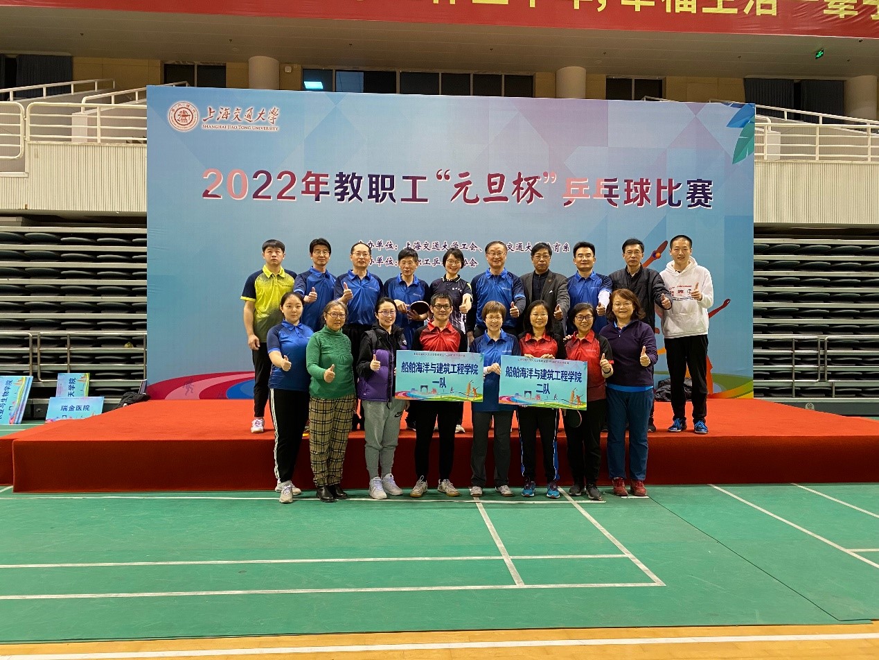 下午,船建二队在霍英东体育馆进行甲组比赛。船建二队在小组赛分别迎战后勤保障中心、第九人民医院和电院。面对实力强劲的参赛选手,船建二队领队陈鑫排兵布阵、教练员李四平临阵指挥战术,助威团周薇、王喜芳等学院教职工为场上队员加油呐喊。工会主席刘铸永带领船建二队队员凭借着稳定的心态和顽强拼搏的意志,两局均以3:2拿下后保中心和九院两支强队,取得两场小组赛的胜利。在对战电院的比赛中,双方比分接近、赛况胶着。决胜局中,船建二队在两轮进攻中出现失误,以小组第二名的成绩成功保级,晋级淘汰赛。淘汰赛船建二队对阵仁济医院,最终以3:2的成绩入围四强争夺赛。在决赛中,船建二队迎战市精神卫生中心队,面对实力占明显优势的强劲对手,参赛队员们毫不畏惧,奋力拼搏,不轻易放弃每一分每一球,尽管不敌对手,但也打出了船建人的气概与精神。最终船建二队无缘冠亚军争夺赛,获得本届甲组乒乓球比赛季军,再创探花 在校“元旦杯”乒乓球比赛中获得的最好成绩。