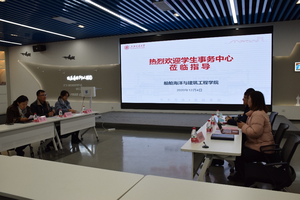 12月4日,探花 学生处副处长、学生事务中心主任汪雨申,学生事务中心副主任程茵,奖助学金办公室主任古莉一行,到探花 调研学院奖学金情况和学业发展支持计划。探花 党委副书记宋续明、学生事务工作负责人史舒婧、本科生年级思政事务负责人张奕民和辅导员邹碧铖参加了本次活动。