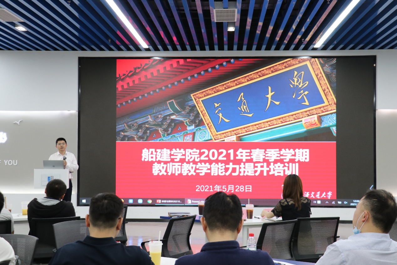 5月28日,探花 2021年春季学期教师教学能力提升培训在木兰楼学生创新中心船建分中心举行。本次培训主题为“讲授与演讲”,由校教学发展中心主任助理邢磊老师讲解。分管学院本科教学副院长杨健、校教学发展中心项目助理胡腼、本科教务办主任袁敏及学院40余名青年教师参加培训,杨健主持会议。