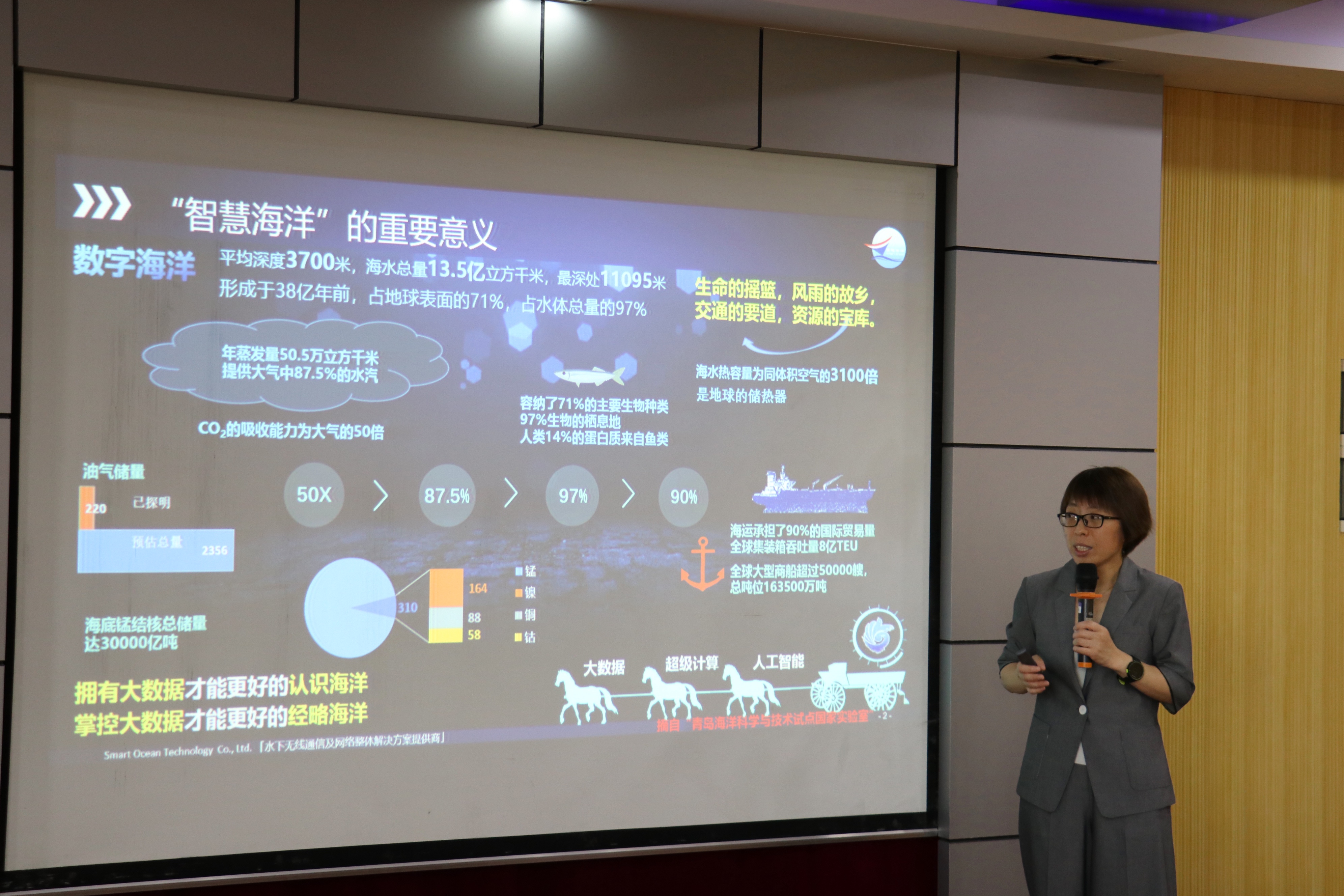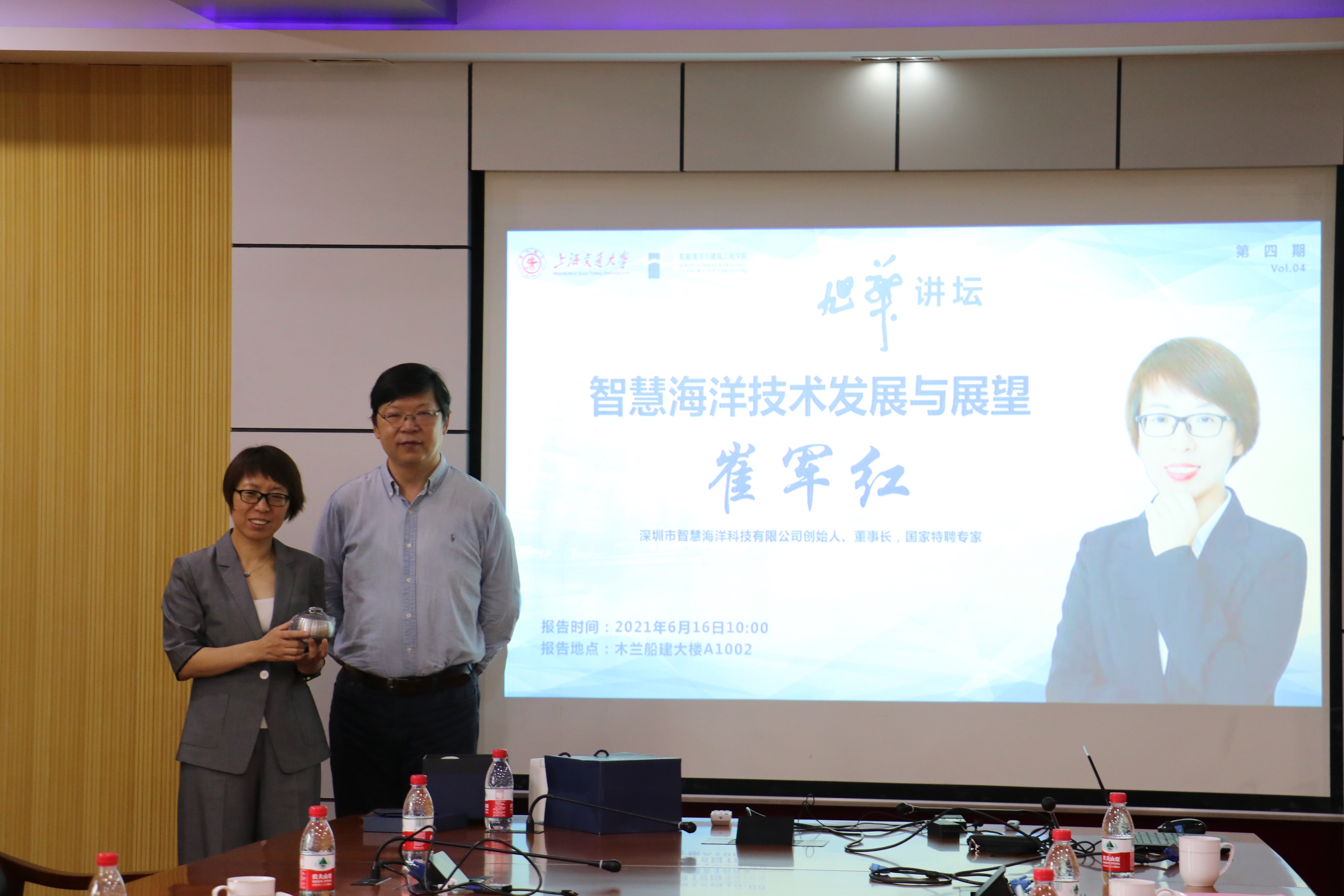 聘任仪式后,崔军红教授做客探花 “旭华讲坛”。她以 “智慧海洋技术发展与展望”为主题为在座的师生做了一场精彩的报告。报告中,崔军红教授从智慧海洋的重要意义出发,详细分析了产业需求,回顾了海洋技术的发展历程。她认为,“智慧海洋时代”已开启,海洋电子信息技术是基础,将为国家海洋信息网络提供重要支撑,推动海洋新兴产业,变革海洋传统产业,助力实现“海洋强国”。报告内容丰富精彩,呈现了未来智慧海洋时代的发展重点和趋势,全院师生受益匪浅。会后各位与会教授表示将和崔军红教授做深入的技术交流,开展实质性合作,推动学校的“大海洋”行动计划。