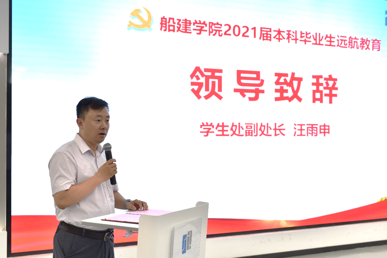 学生处副处长汪雨申为大会致辞。他对圆满完成本科学业的毕业生同学表示祝福,并肯定了毕业生党员们在过去四年中所取得的成绩。同时,他对同学们分享了三个体会。一是要牢记入党初心,矢志爱国奉献;二是要坚持奋斗拼搏,勇担时代使命;三是要常怀感恩之心,砥砺一等品行。他希望毕业生党员们在今后的人生中,能持续奋斗,勇往直前,在使自己成为一个大写的人的同时,也将自己锤炼成一名永远对党忠诚、为人民服务的中国共产党党员。