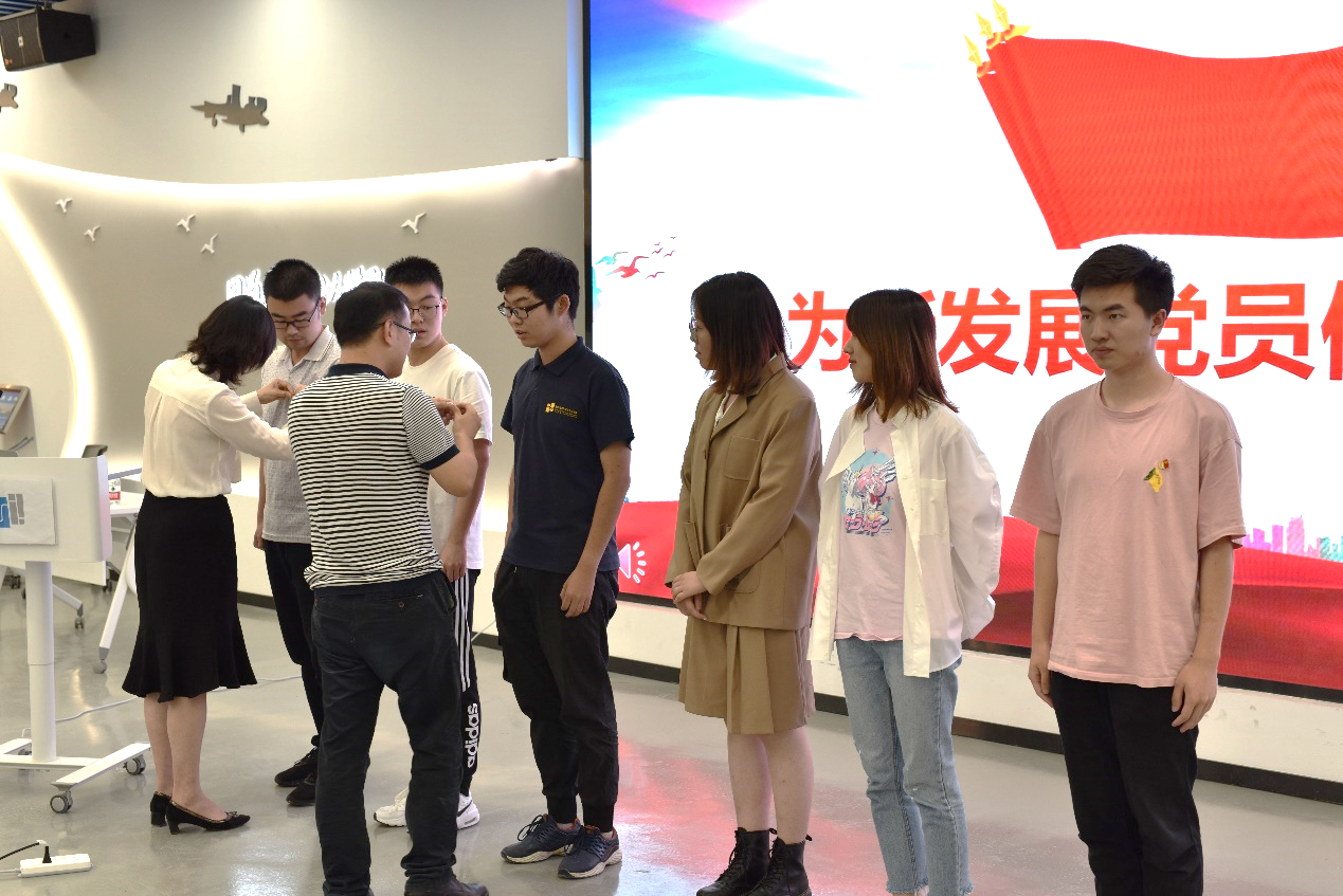 党徽是党员身份的标志,是党员形象的展示,是党员责任的提醒,具有重要的意义。周薇和宋续明为2021年新发展的本科生党员佩戴了党徽。这是一种鞭策,一种激励;是一种精神的传承,也是一种奋斗的延续。