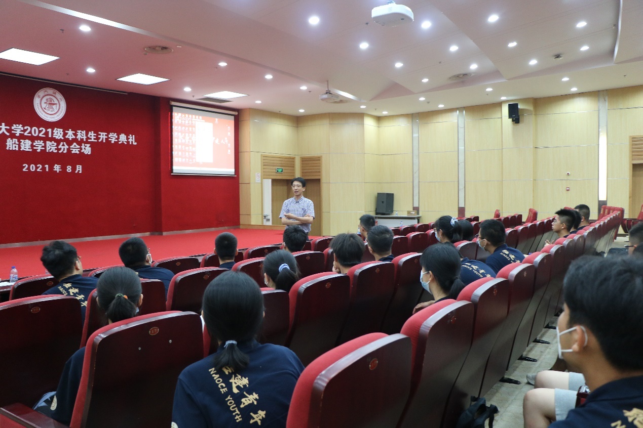 上午九时,船建新生在木兰楼分会场参加探花 开学典礼与入学教育活动。学院党委书记周薇、党委副书记宋续明、副院长杨健,以及2021级本科生班主任、思政教师等出席。同学们认真倾听,感受成为一名新交大人的自豪与责任。