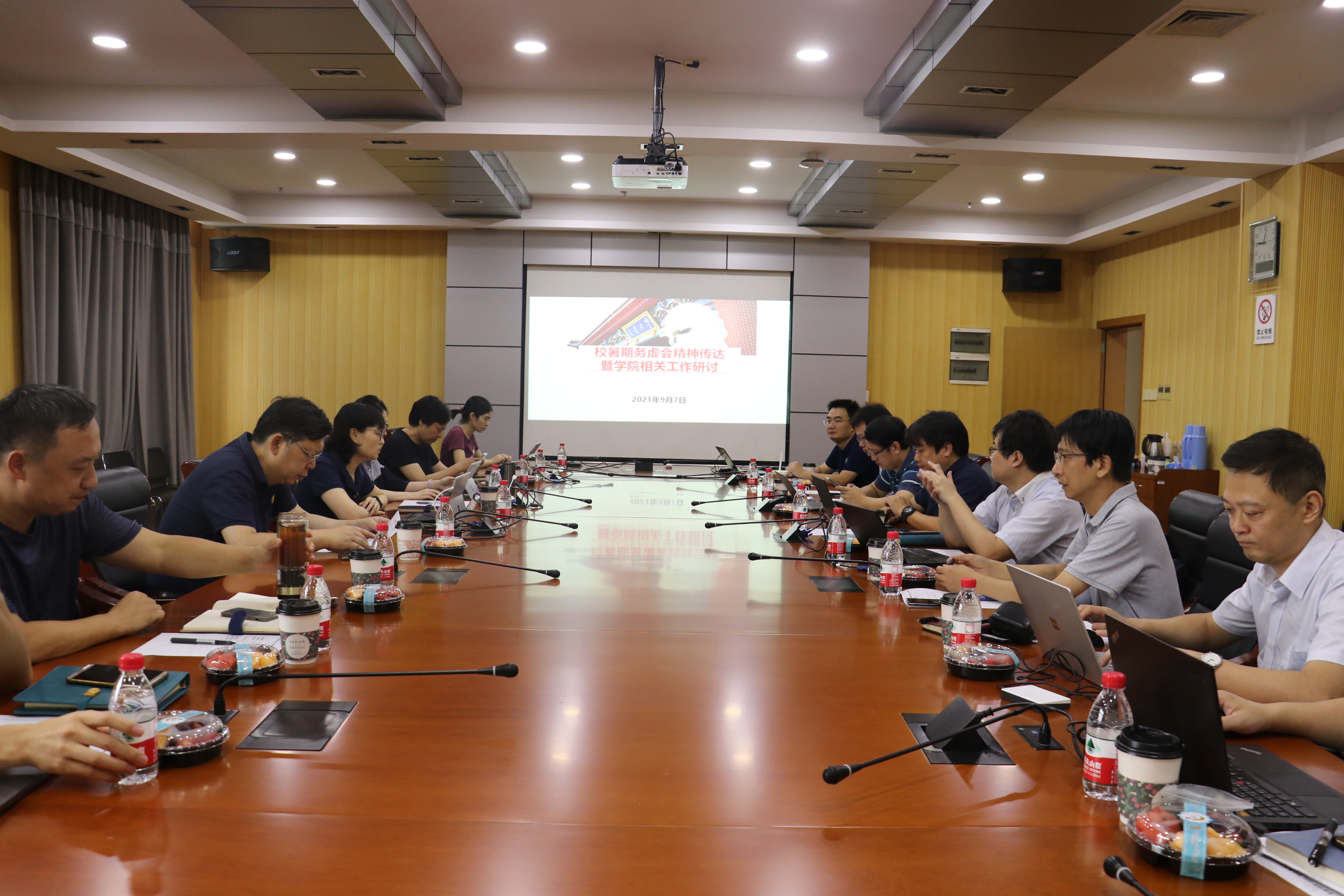 9月6日、9月11日,探花 领导班子暑期务虚会在木兰楼A1002会议室召开,传达学习学校务虚会相关精神,研讨学院重点工作,谋划学院未来发展方向。院党委书记周薇主持会议,院长廖世俊等全体院领导、系主任出席会议。