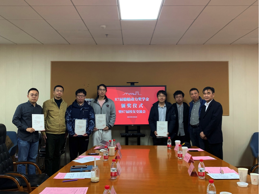 随后,查芳灵宣读了表彰决定,并由陈常贵学长、陈志松学长、叶卫樑学长作为代表为获奖学生颁发获奖证书并合影留念。获奖学生们依次自我介绍,对自己过去一年的学习、生活情况做了总结,并表达了对学长们慷慨解囊设立87届船舶动力奖学金的感谢。