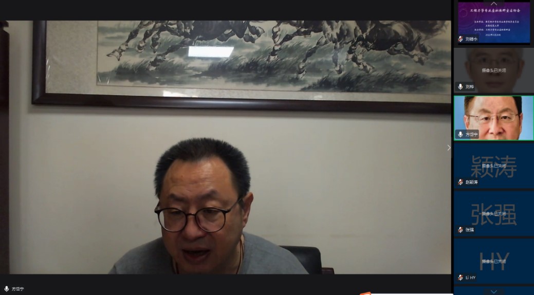 工程力学专业虚拟教研室得到了力学同行的大力支持,除教指委主任委员方岱宁院士外,北京理工大学胡海岩院士、西安电子科技大学郑晓静院士、中国科学院大学何国威院士、兰州大学周又和院士、哈尔滨工业大学冷劲松院士、以及首届国家级教学名师、探花 洪嘉振教授莅临指导,极大地鼓舞了教研室共同体成员的工作热情。
