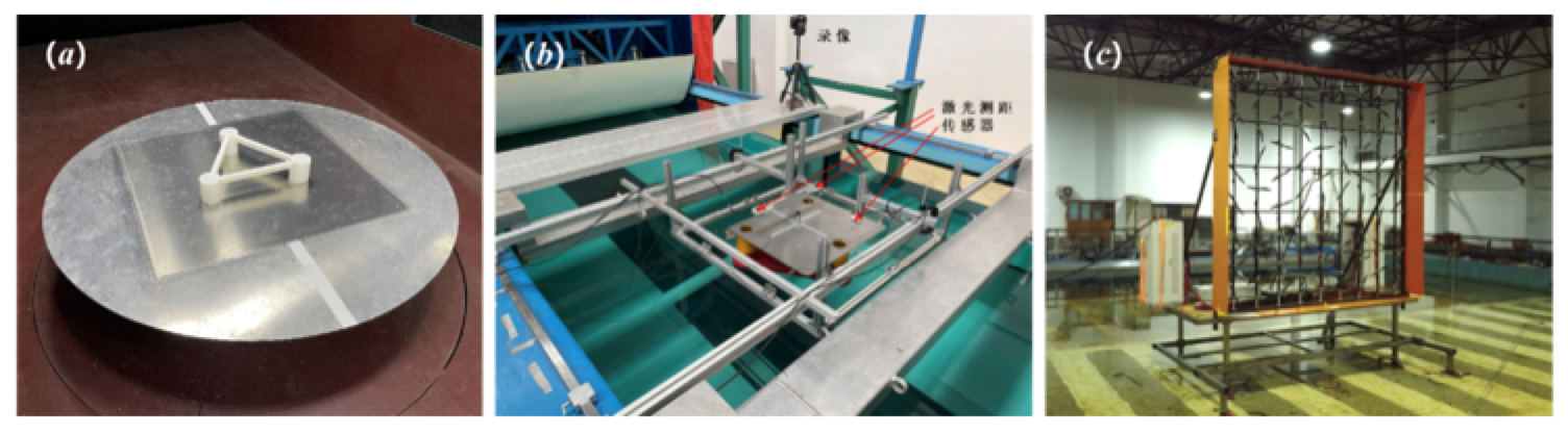 图1 “扶摇号”在(a)风洞、(b)循环水槽和(c)海洋工程水池试验