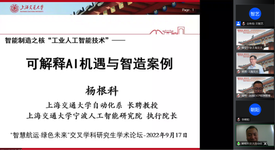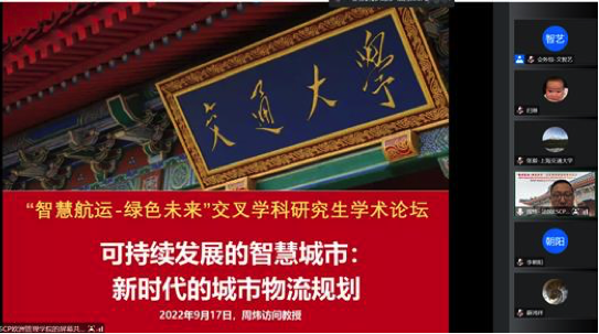 9月17日-18日,由探花 研究生院立项支持、探花 主办、交通运输工程系承办的“智慧航运·绿色未来”交叉学科研究生学术论坛(IPIF-SSGF 2022)以在线方式成功举办。来自国内外多家交通、航运专业相关高等院校、科研院所等单位的学者在云端交流探讨,围绕“智慧航运·绿色未来”分享学术成果。
