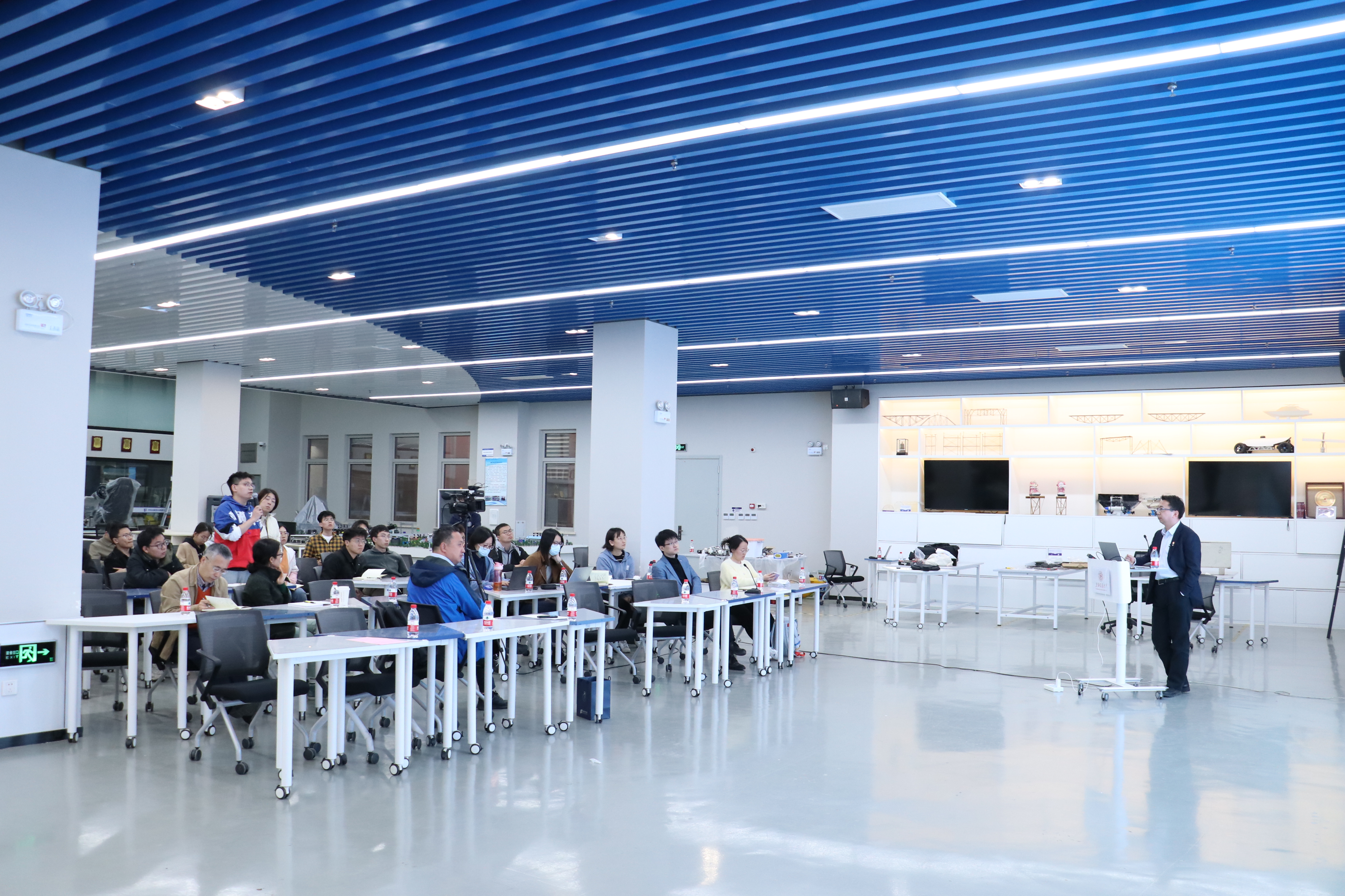 报告提问交流环节,现场师生就风场选址、漂浮式风机样机与类型、系泊系统等相关问题踊跃提问,高教授逐一细致作答,与会人员深受启发。最后,付世晓副院长代表探花