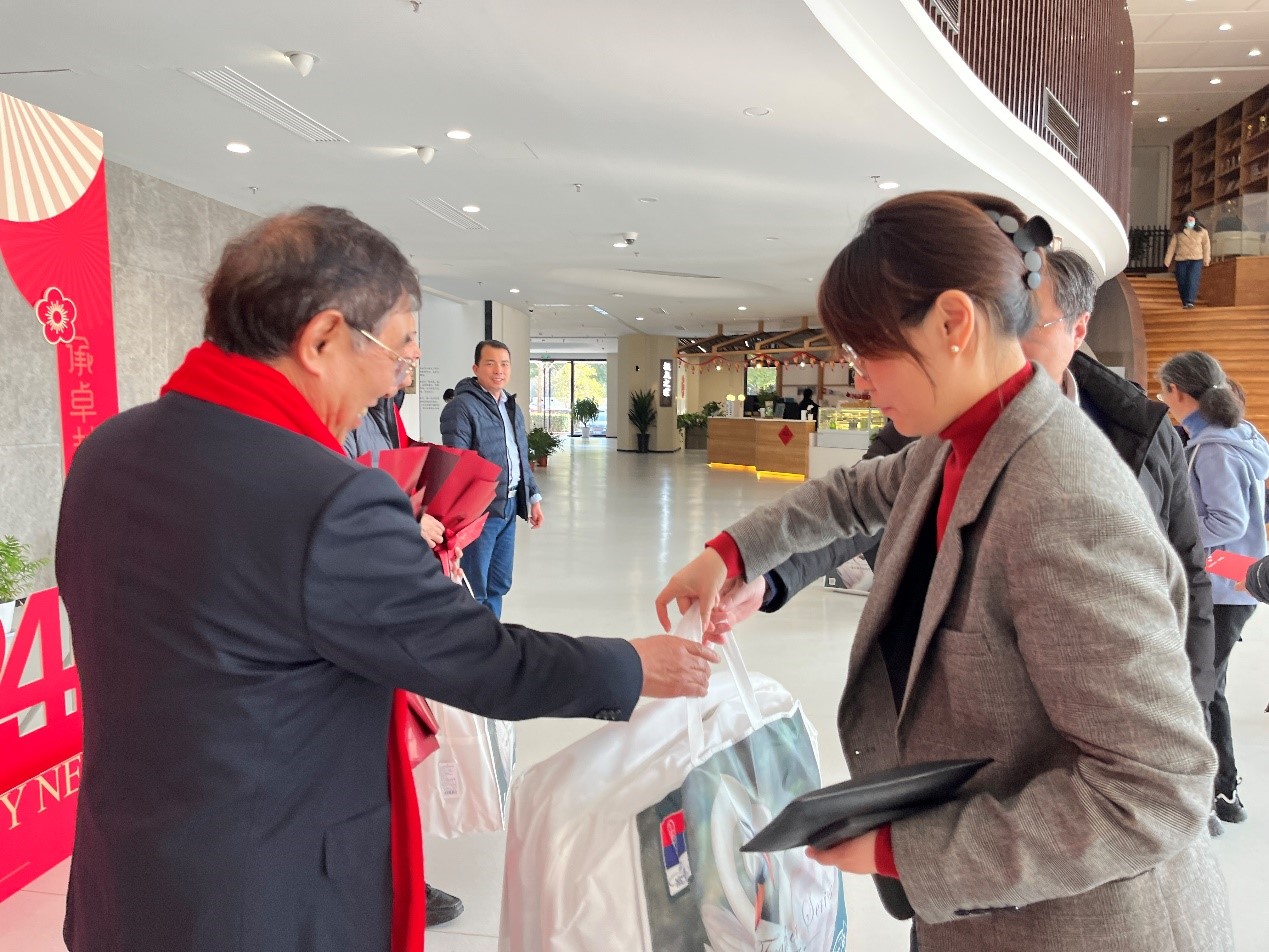 交流会最后周薇、薛鸿祥、刘铸永等代表学院向荣休教师提前致以新春祝福并颁发鲜花和纪念品合影留念。