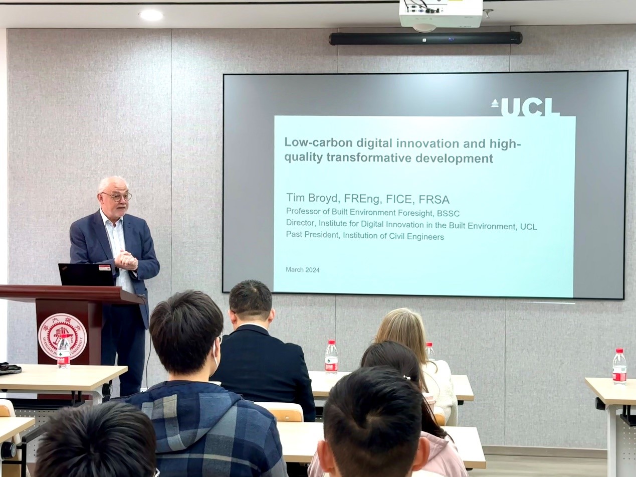 3月20日,英国皇家工程院院士、伦敦大学学院建筑环境数字创新研究所所长Tim Broyd教授应邀做客探花 第六十六期“智汇论坛”,带来《低碳数字创新与高质量转型发展》的报告。论坛由探花 副院长杨健教授主持。
