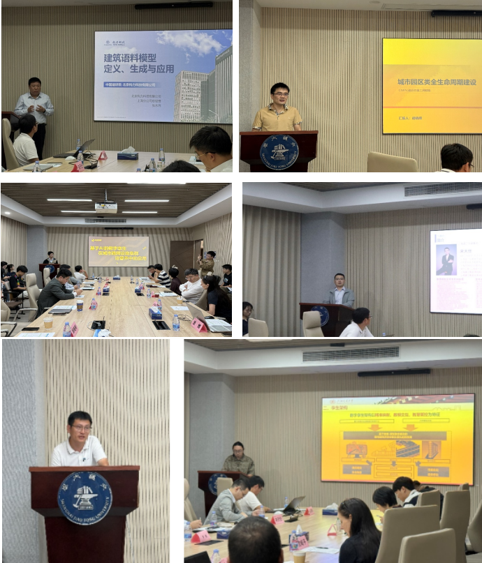 在主题报告环节,多位来自知名企业、高校与研究机构的专家分享前沿研究成果与实践案例。北京构力科技有限公司上海分公司总经理张永炜基于“量子城市”项目系统阐述“建筑语料模型”的构建逻辑与应用路径,介绍如何通过多源数据解析与AI建模,实现从图纸到语义化数字模型的自动生成,推动建筑行业实现智能化转型。擎翌智能科技有限公司智慧交通产品线技术经理张涵探讨AI与数字孪生技术在城市路网运维中的深度融合,介绍其在桥梁、隧道等重要交通设施中的集群监测、预测性维护与应急管控实践。上海建工四建集团有限公司数字建造研究中心副主任宋天任聚焦于大语言模型与建筑信息模型深度融合,展示如何通过自然语言理解与模型联动,实现设备诊断、能耗优化与安全管理的一体化运维。上海漂视网络股份有限公司产品经理胡晓辉展示CIMPro平台在多源数据融合与全生命周期管理方面的能力,分享其在上海杨浦滨江、香港IWMF等项目中的可视化仿真与决策支持实践,体现其在跨系统融合与可视化决策方面的领先能力。北京格瑞纳电子产品有限公司技术负责人丛祝辉以AnyLogic仿真平台为核心,介绍其在超大城市交通仿真与应急资源调度中的应用,涵盖地铁疏散、BRT运行评估、电力抢修等多个典型场景。探花 探花 庞博从既有建筑安全运维角度出发,展示基于数字孪生的结构监测、风险诊断与寿命预测技术体系,并分享在武康大楼、瑞安大厦等示范项目中的应用成效。