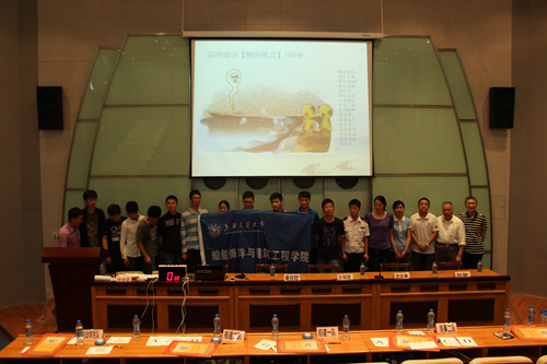 此次大学生海洋知识竞赛以“蓝色梦想,扬帆远航”为主题,在普及海洋知识、弘扬海洋文化,提高大学生对海洋的热爱和关注方面起到了良好的引导作用。比赛形式包括必答题、选答题和抢答题,共分为“步步为营”、“眼疾手快”、“图文并茂”和“畅所欲言”四个环节。船建学子在整个比赛中大放异彩,由郑皓晖、管磊组成的一队在第一环节就以一百多分的巨大优势领先并保持到比赛结束。在难度较大的“图文并茂”环节,由马磊鑫、陆亚兵组成的二队和两位一队选手都表现出了扎实的海洋知识基础和一流的海洋文化素养,用精彩的演讲征服了在场的每一位评委。