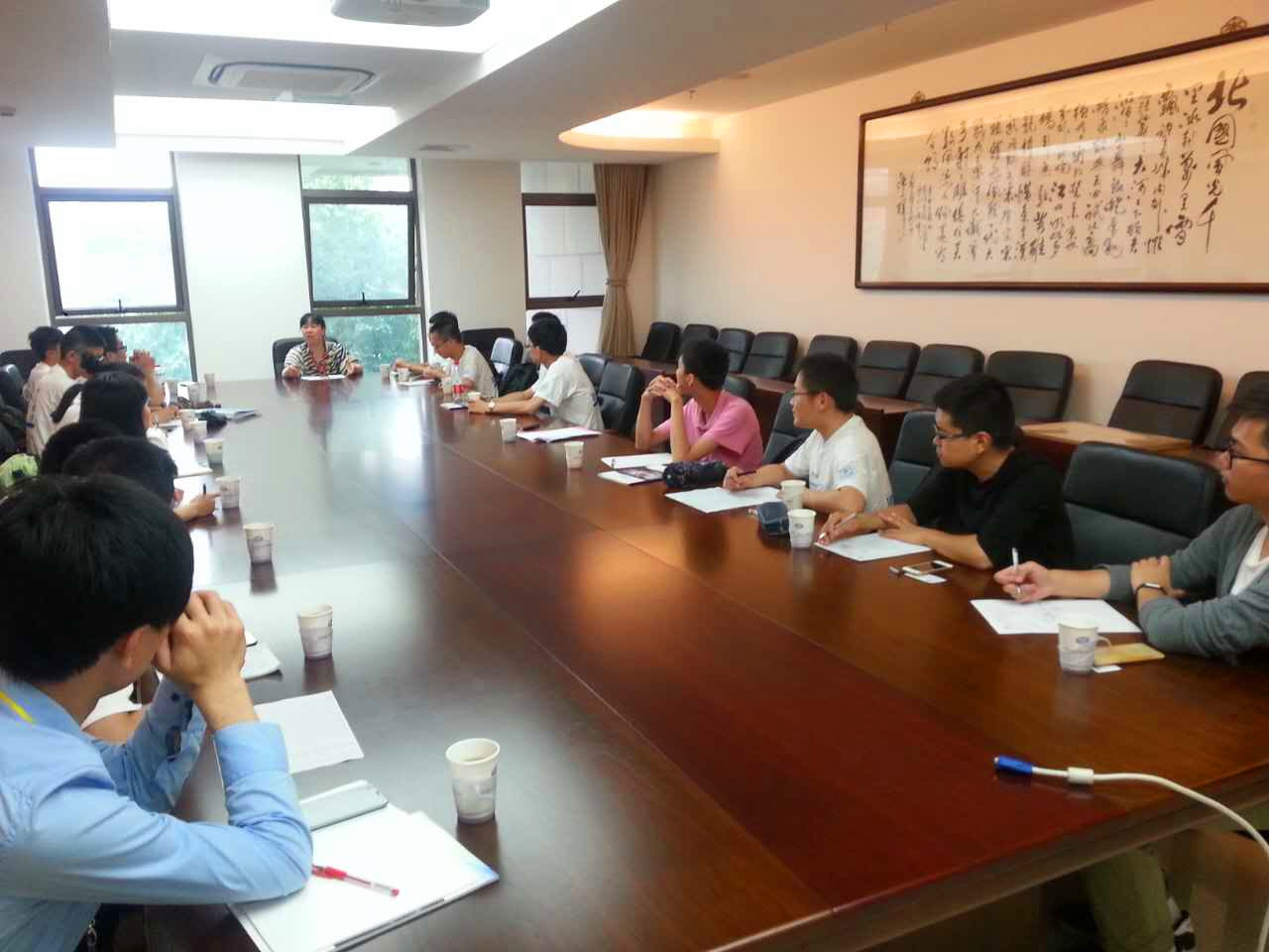 上午10点,702所人事处处长王莉萍热情接待了船建学子,并结合宣传片介绍了研究所的发展历程、研究领域、设施规模和主要成果。她还通过“蛟龙号”执行深海任务的短片,向学生们展示了“蛟龙号”成功实现的水下调试、生物诱捕、数字水声通讯等功能。下午,在人事处何亮带领下,实践队参观了研究所综合展厅,并走进循环水槽、拖曳水池和耐波性、操纵性水池实验室,聆听了各实验室负责人的详细介绍。随后,何亮为同学们介绍了702所的招聘需求和计划安排,并热情解答了同学们关于求职就业的各类疑问。