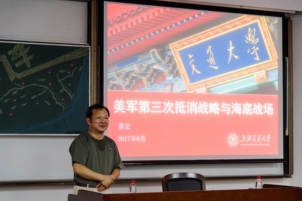 “同学们,水下战场已经成了未来战争的制胜关键,欢迎大家投入海洋怀抱,共同追梦中华崛起。”易宏教授通过一个半小时的讲座展示了自己的海洋情怀,