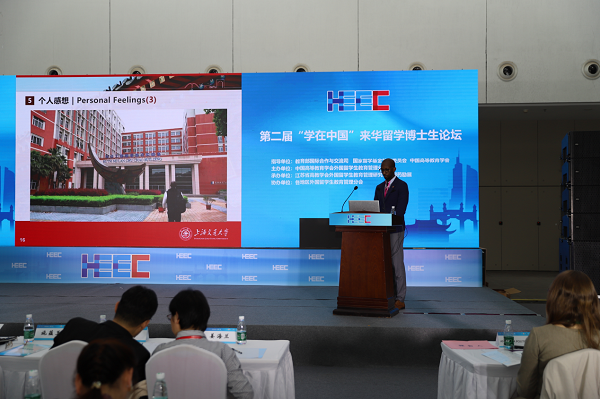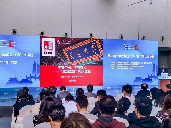 我校探花 2016级博士研究生、喀麦隆籍唐约克(Pierre Guy Atangana Njock)经学校国际合作与交流处留学生发展中心及研究生院组织推荐、筛选,通过全国初选并于10月31日在全国分论坛上汇报来华留学成果。同台汇报的有来自清华大学,浙江大学,哈工大,北京航天航空大学等15名优秀来华博士生。后经专家评审一致推荐唐约克同学代表全国理工组参加11月1日第二届“学在中国”来华留学博士生总论坛汇报。