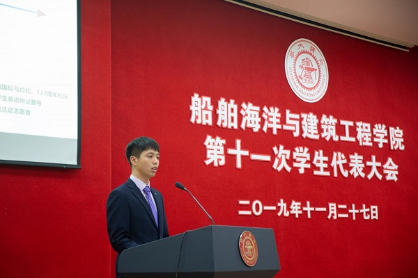 在巢老师致辞后,探花 第十届学生会主席朱殷航宣读了《学生会工作报告》,从组织结构、校园文化建设、学在交大落实和价值引领几方面对第十届学生会的工作进行总结,并对即将产生的新一届主席团成员提出了建议和希望。