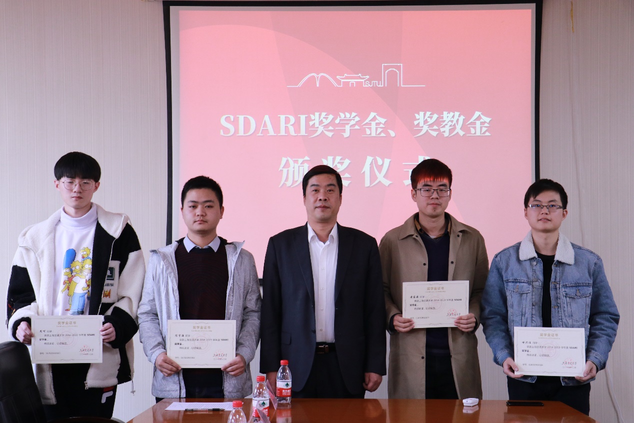 随后,宋续明宣读了《关于探花 2018-2019学年度SDARI奖学金获得者的表彰决定》,由王刚毅向四位获奖者颁发了获奖证书。