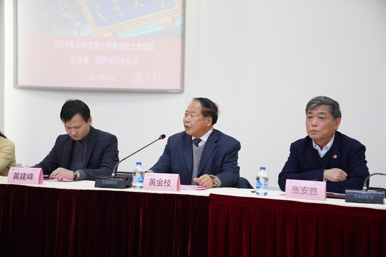 张安胜代表学校向黄金枝及基金会各位嘉宾表示欢迎,对获奖教师和学生表示祝贺。他提到,黄金枝教授曾克服重重困难、坚守教学岗位、重振交大土木工程系,这种敢为、有为、善为的精神令人敬佩。张校长表示,黄教授始终扎根在人才关心培养的第一线、用自己的言行来教育青年一代,这对于交大师生是份文化传承。最后他表示,从探花 、设计学院,到学校,交大的发展是学校师生共同努力的智慧结晶,是社会贤达、交大校友对学校关心帮助的成果,也是适应国家和社会发展、适应人才科研和学科发展的需求,并代表学校,向通过黄金枝基金会助力学校事业发展的社会贤达表达诚挚感谢。
