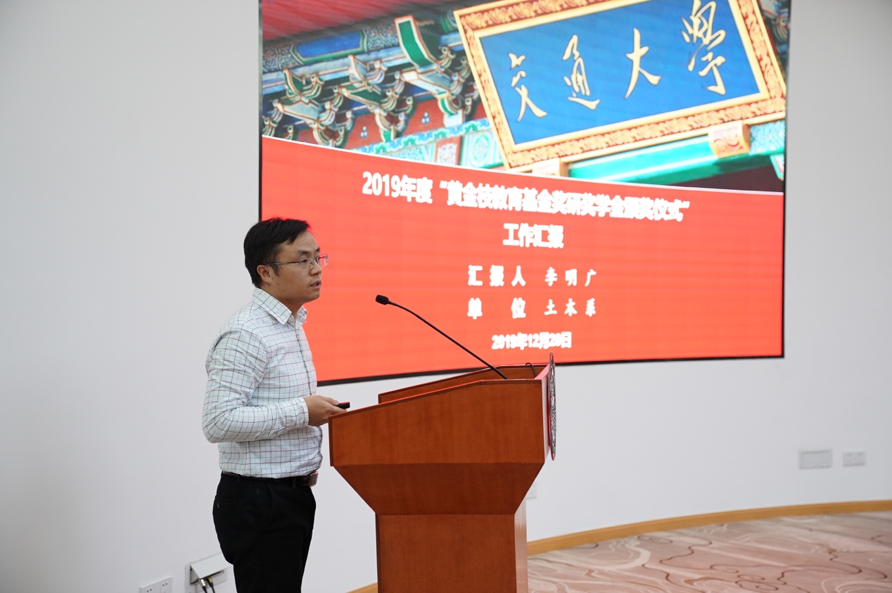 武超、陈锦剑、赵恺分别代表设计学院、探花 汇报2019年“黄金枝土木建筑奖学金、奖研金”评审情况,并对获奖师生及相关优秀成果做简要介绍。
