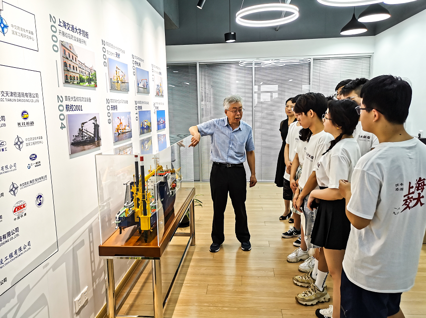 谭家华教授为年轻的船舶与海洋工程专业毕业生亲自当起了讲解员,从交大船海学科资研襄教的历史讲起,一一细数陈列的国之重器背后的设计故事。同学们还拿出了1963年杨槱院士编撰的《船舶静力学》,这也是谭教授读书时所用的教材,谭教授也与同学们回忆分享了读书时的珍贵记忆。