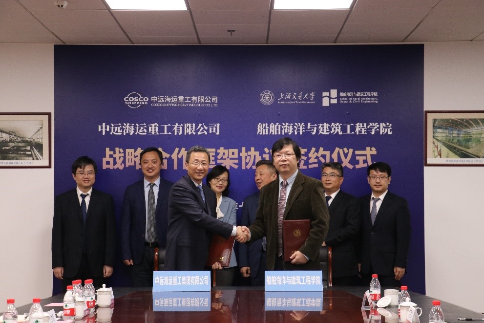 10月15日,上海交大探花 与中远海运重工有限公司签署合作协议,在基础学科研究、科技成果转化、人才教育培养等方面建立全面战略合作伙伴关系。签约仪式在木兰船建大楼举行,中远海运重工有限公司董事长、总经理梁岩峰、党委书记、副总经理李懿文,探花 院长廖世俊、党委书记周薇,双方有关部门、学科负责人、教师代表参加活动。廖世俊主持会议,代表探花 对梁岩峰一行的到来表示热烈欢迎。