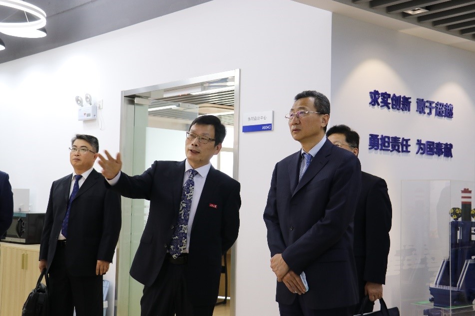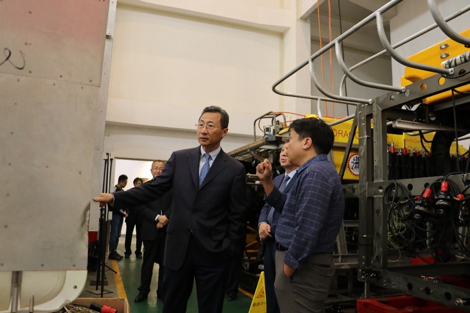 会前,梁岩峰一行在探花 党委副院长薛鸿祥、彭涛、副书记宋续明等的陪同下参观了海洋工程国家重点实验室和船舶设计研究所。