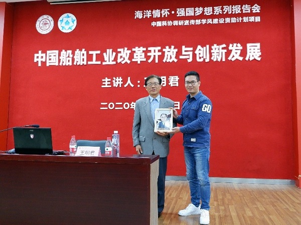 当前,世界正经历着百年未有之大变局,我国船舶工业的发展也面临着新一轮的机遇与挑战。王明君学长说,作为新时代的船建人,同学们要紧密围绕国家对于建设海洋强国、制造强国和交通强国的战略部署,把自己的人生理想融入国家发展大局,以更高的要求鞭策自己,学习知识本领、提高能力素质、强健体魄、磨砺意志。通过在交大求学期间的奋斗,努力成长为推进新时代中国特色社会主义伟大事业的生力军和主力军,在各自岗位上坚忍不拔、锲而不舍、勇于进取,为实现第二个百年奋斗目标、把我国建成富强民主文明和谐美丽的社会主义现代化强国贡献智慧和力量。