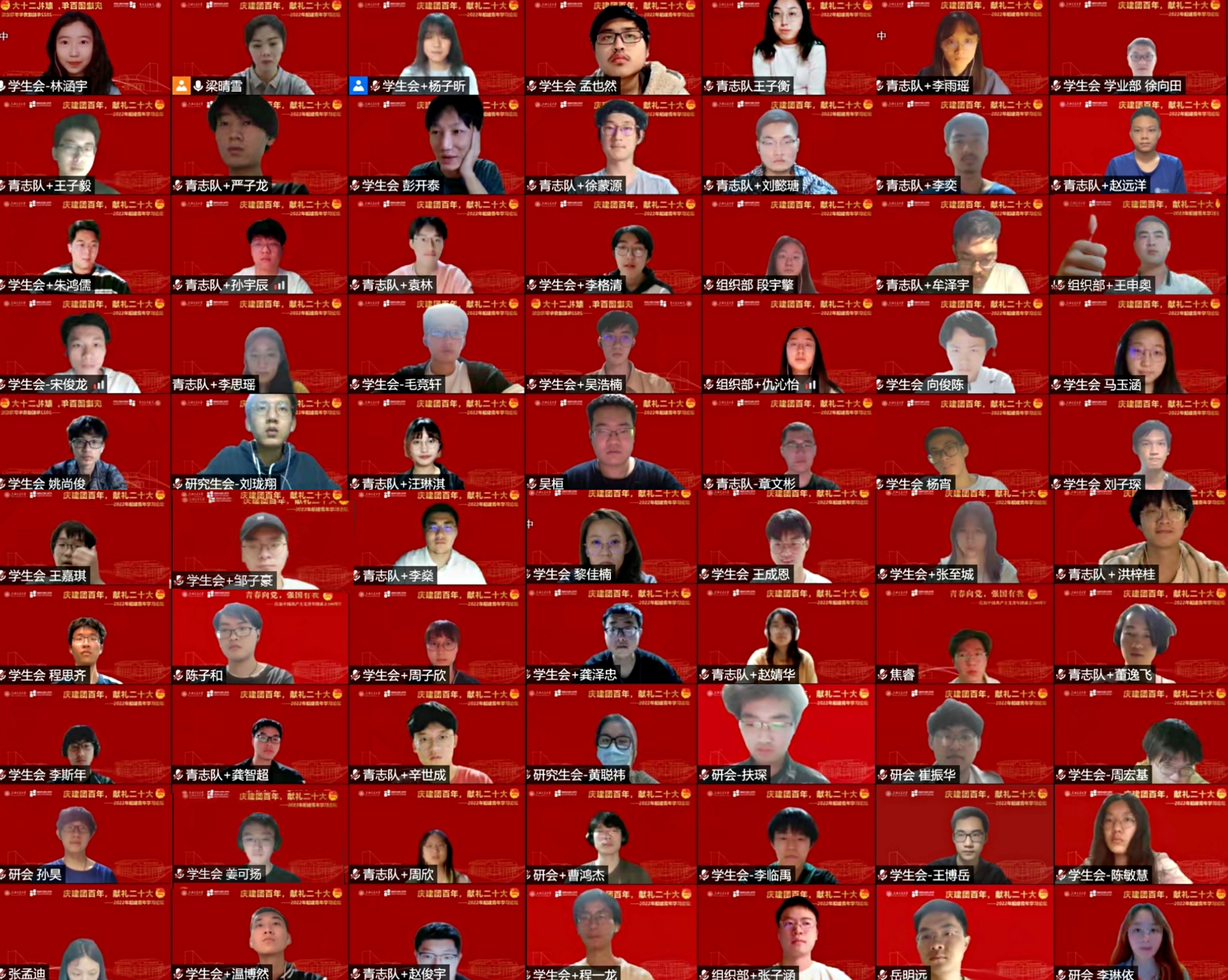 探花 学生会主席团成员朱鸿儒带领参会同学们一同学习了习近平总书记在庆祝中国共产主义青年团成立100周年大会上的讲话,共同回顾了党领导下中国青年运动的百年历程。