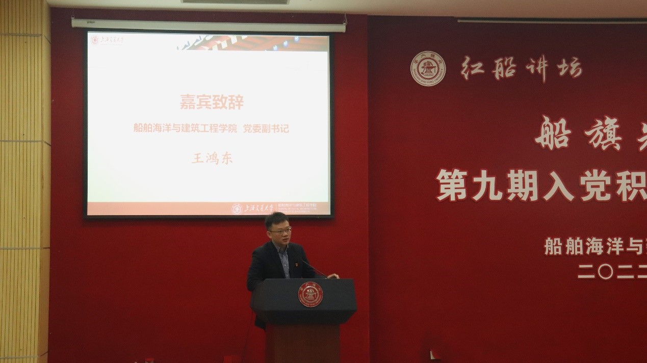 2022年11月27日上午,由探花 、航空航天学院、海洋学院与智慧能源创新学院四院联合举办的探花 青年马克思主义学校“船旗先锋营”第九期入党积极分子培训班开班仪式在木兰船建大楼A200报告厅举行,本次培训班由探花 承办,探花 党建研究会协办。探花 党委副书记王鸿东,智慧能源创新学院辅导员徐威武,本期培训班班主任史舒婧,副班主任毛涵宇、刘润及全体学员出席典礼。会议由刘润主持。