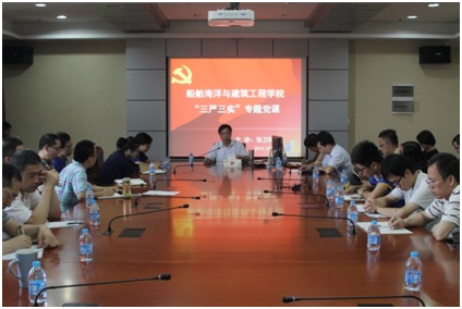 结合学院实际,张卫刚详细阐述了开展“三严三实”专题教育的重大现实意义。他表示,近年来,不管是高新船舶与深海开发装备协同创新中心成立,还是海洋战略装备研究院落户交大,以及近期将要承办的国际性的力学大会,都离不开全体船建人的努力和贡献。但同时,我们也应该清楚的认识到我们身上的不足,“三严三实”专题教育活动是党的群众路线教育实践活动的延展深化,我们要以此为契机,进一步深入推进思想作风建设、教师队伍建设、组织管理建设、平台基地建设等,充分发挥党政联席会议制度、学位委员会、教代会、党代会等机构的重要作用,为建立长聘体系、锻造过硬队伍、推进综合改革及构建十三五规划等建章立制、营造良好的政治生态。