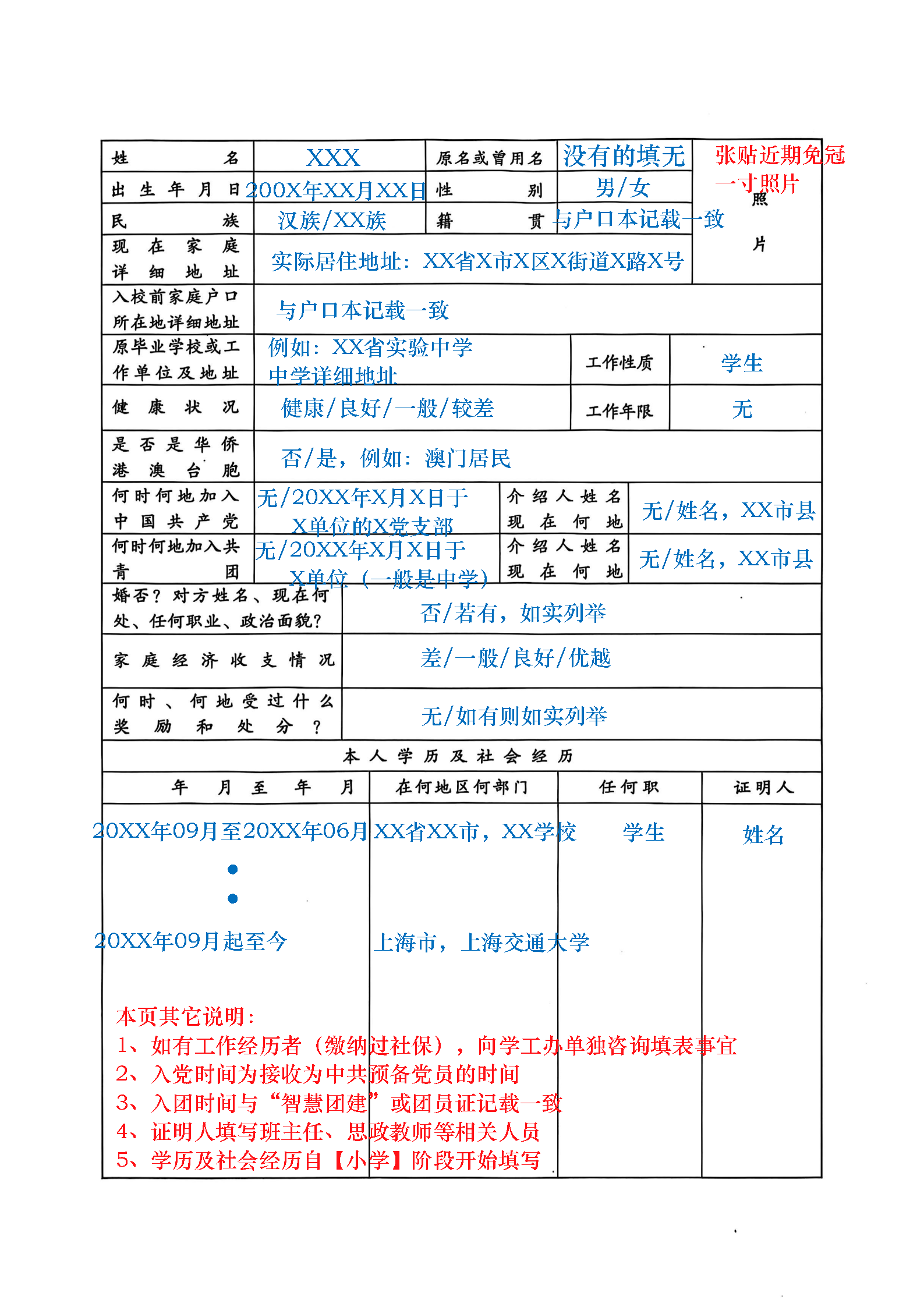《探花 学生登记表》(本科生入学登记表)填表说明
