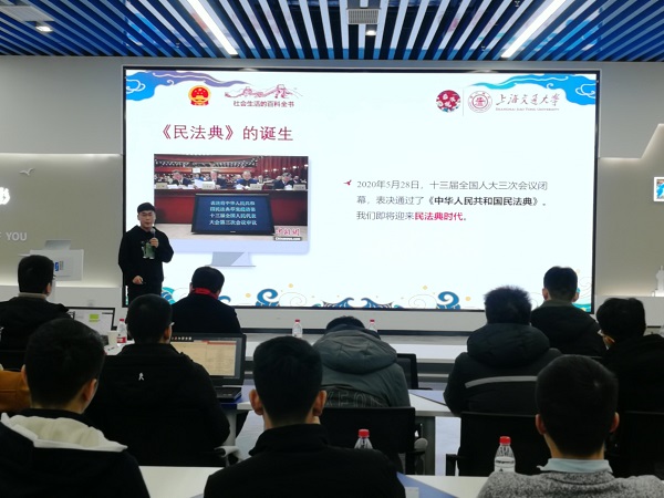 2020年5月8日,第十三届全国人大第三次代表会议审议通过了《中华人民共和国民法典》。作为“社会生活的百科全书”,民法典将如何保障我们的生活?民法典又有哪些法条跟我们息息相关呢?白龙虎代表他们小组,以“与生活千丝万缕,与你我利害攸关”为主题和大家分享了民法典的制定过程,并就几项与青年学生利害攸关的发条进行了科普。法治兴则国兴,青年强则国强,新时代青年将在民法典的保护下,担当时代重任、绽放青春光彩。