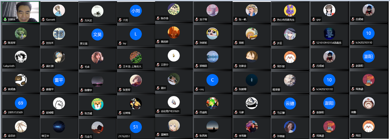 对所有导师情况介绍后,刘铸永与学生进行了交流,对学生关心的问题进行了解答。并对本科生导师的后续工作安排进行了进一步的介绍,希望同学们积极与感兴趣的教师进行联系,能够更好地、更早的开展相关方向的研究。两位班主任也希望大家在疫情期间平衡好在线学习和生活,在不影响学业的同时健康的生活。