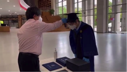特殊的拨穗仪式也为毕业生们上了一堂青春思政大课。为保障“毕业季”体验,学院高度重视疫情期间的毕业季工作。结合疫情防控要求,经过统筹谋划、精心部署,学生工作办公室与研究生教务办密切合作、精心服务,学院党政领导、系主任、思政教师、辅导员共同组成了志愿服务工作队,一对一对接当天办理毕业手续的学生,主动提供暖心周到的服务。学院副院长薛鸿祥、杨健,党委副书记王鸿东在木兰楼一楼大厅接待点,引导办理手续的毕业生,组织现场工作,确保毕业生学历、学位证书领取工作顺利开展。