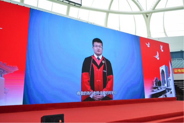 在毕业典礼上,探花 “家长寄语视频”让家长“云现身”,掀起了感动的高潮。虽然家长们难以入校和同学们庆贺毕业,却也以温馨的形式建起了家校的联动。在家长们的寄语中,“饮水思源,爱国荣校”成为了关键词。秉承校训精神,踏入社会后的历程不仅是个人的奋进,更蕴含着家庭的责任、母校的期望、祖国的未来,希望每一位同学都能在自己规划的蓝图里大展宏图,在勇敢拼搏的世界里闪闪发光。