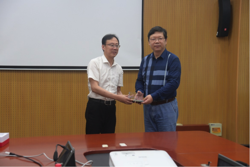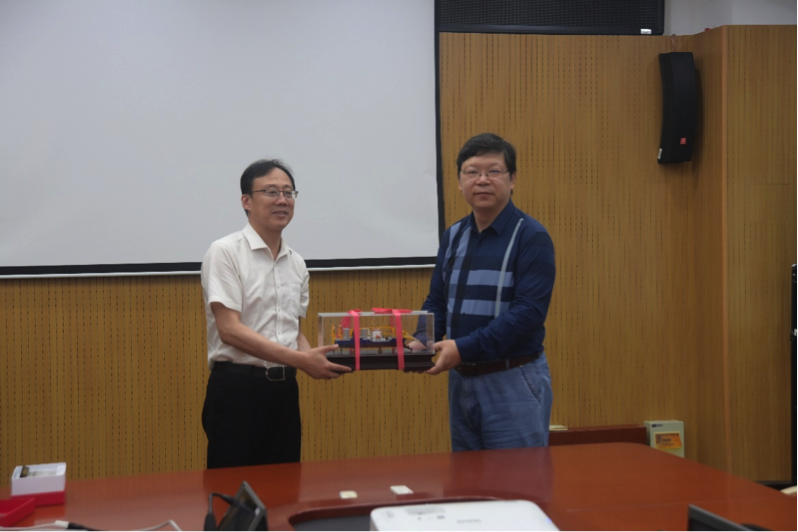 廖世俊和潘光分别代表各自学院向对方赠送纪念品。