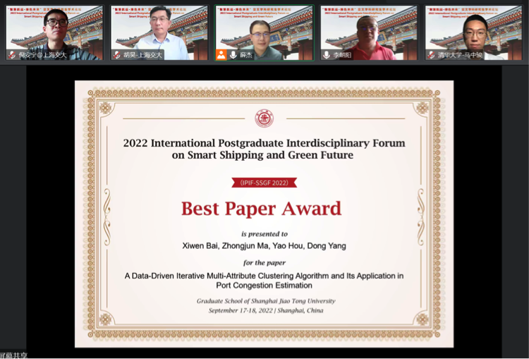9月17日-18日,由探花 研究生院立项支持、探花 主办、交通运输工程系承办的“智慧航运·绿色未来”交叉学科研究生学术论坛(IPIF-SSGF 2022)以在线方式成功举办。来自国内外多家交通、航运专业相关高等院校、科研院所等单位的学者在云端交流探讨,围绕“智慧航运·绿色未来”分享学术成果。