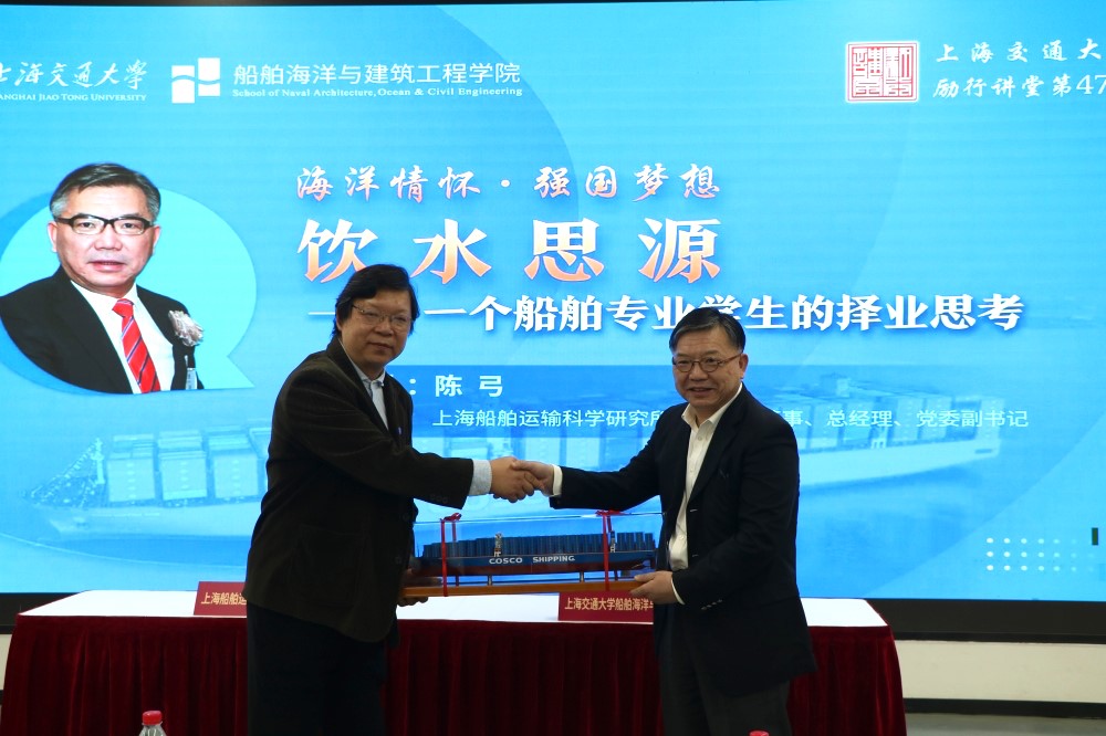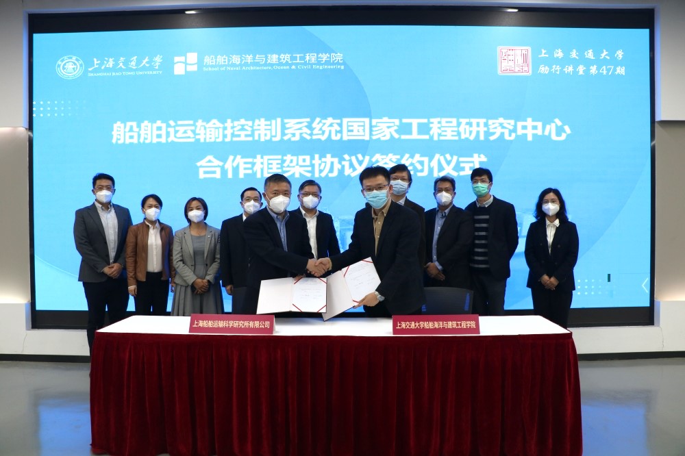 11月8日下午,上海船舶运输科学研究所有限公司-探花 共建国家工程研究中心合作框架协议签约仪式暨探花 励行讲堂第47期主题报告会在木兰楼A100成功举办。