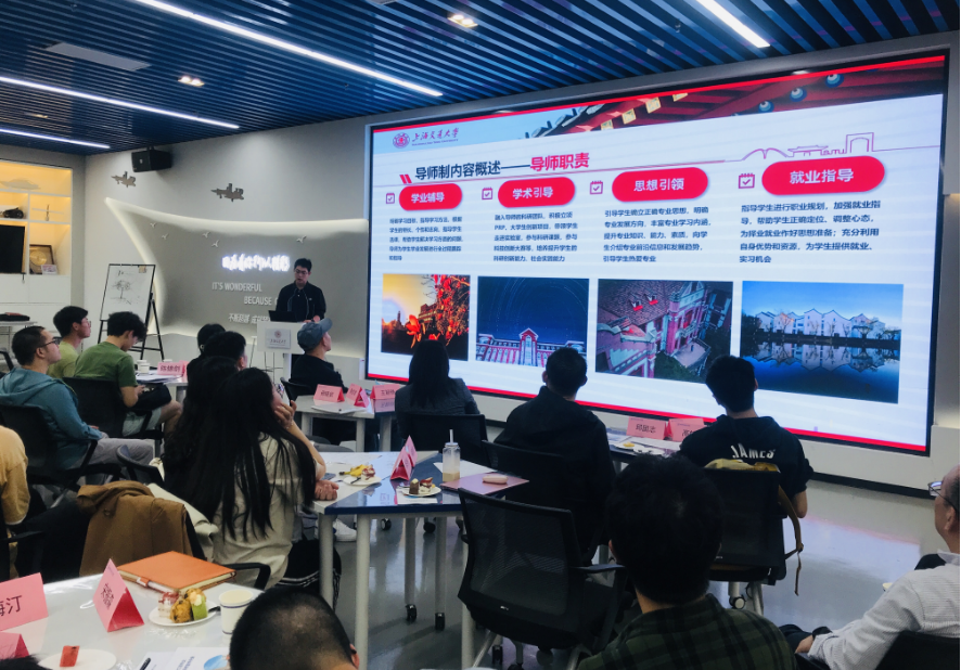 随后,金建刚教授从前期工作准备和调研、导师制度修订和概述、目前工作进展和计划、后期工作方案和成效四个方面为师生全面介绍学院本科生导师制工作的整体工作布局和进度。