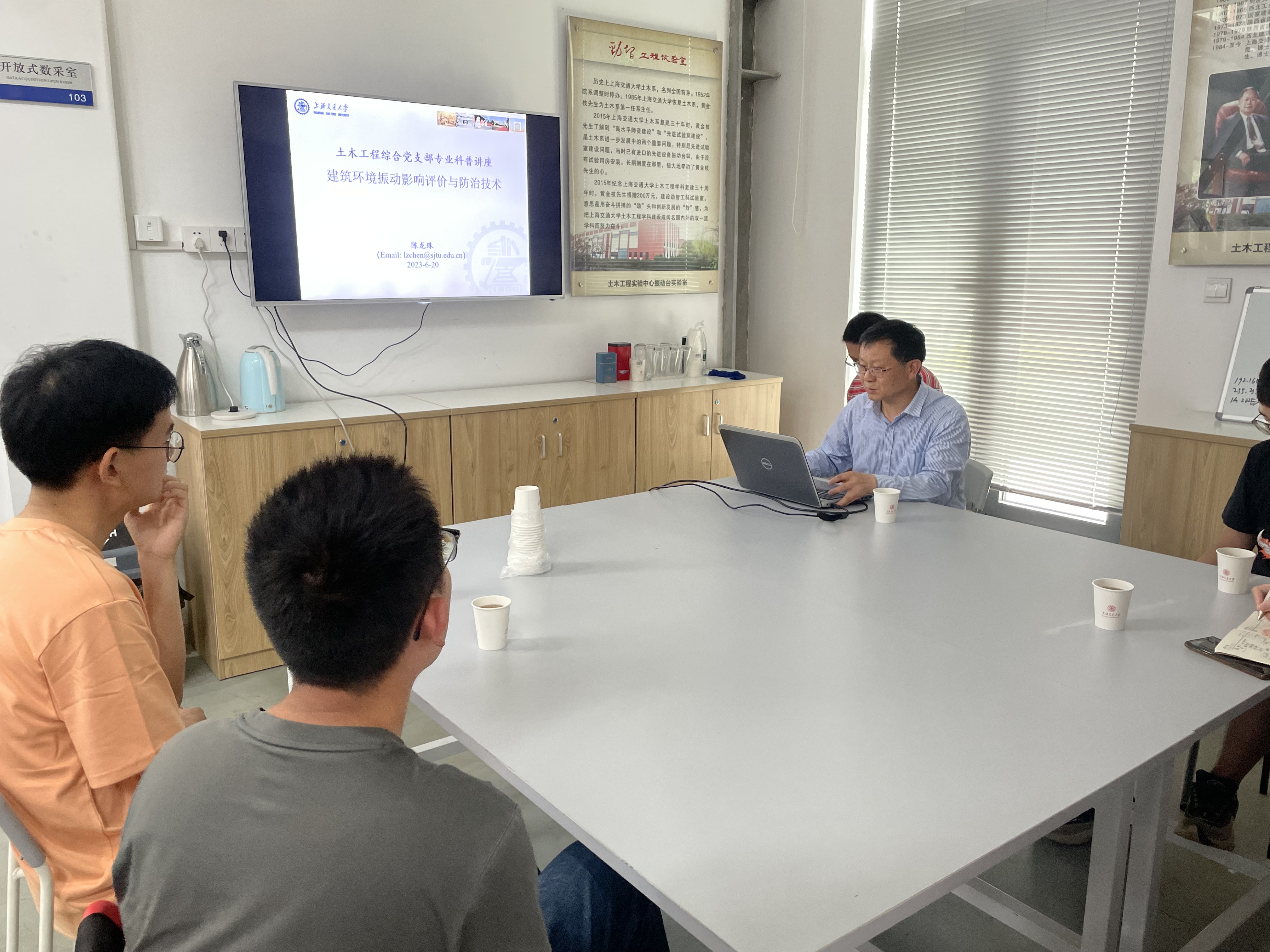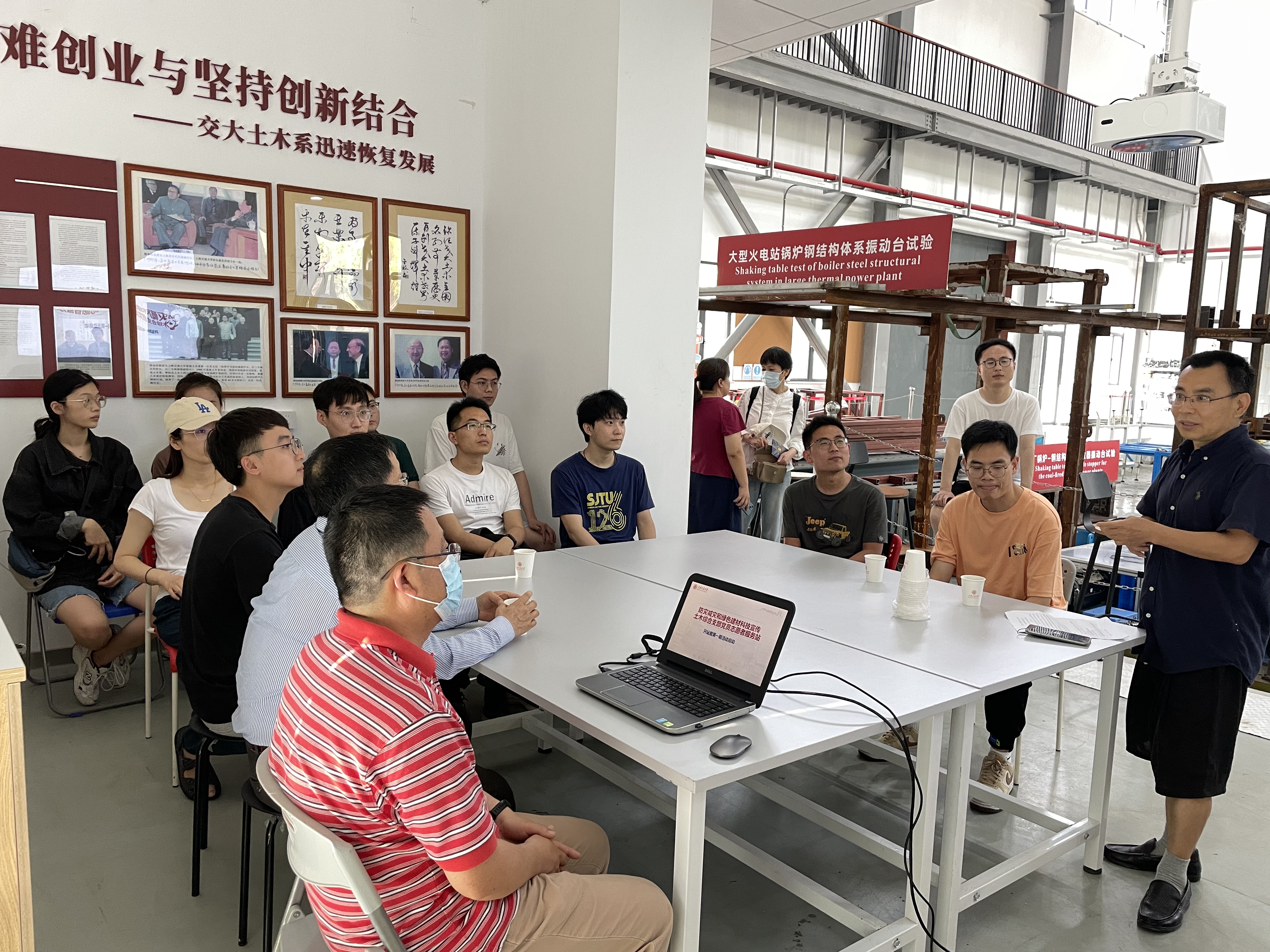 志愿者服务站首期活动于6月20日下午在探花 综合实验B楼振动台实验室举行。探花 特邀组织员朱惠红、土木综合支部全体党员、部分研究生参加活动。此次活动由土木综合支部书记陈兵主持。