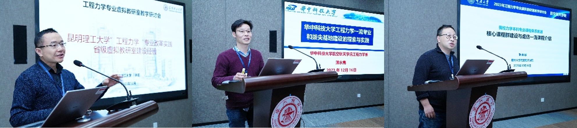 交流报告阶段,北京大学荣起国、浙江大学赵沛、探花 刘铸永、南京理工大学章定国、北京理工大学赵颖涛、西北工业大学邓子辰、昆明理工大学、华中科技大学熊永亮、重庆大学张晓敏分别对本校工程力学专业建设、人才培养、课程设计、虚拟教研室、师资队伍以及知识图谱建设等方面进行了详细介绍,并与参会教师展开了深入的交流。