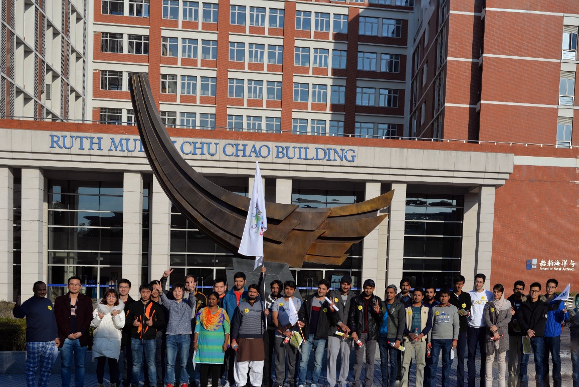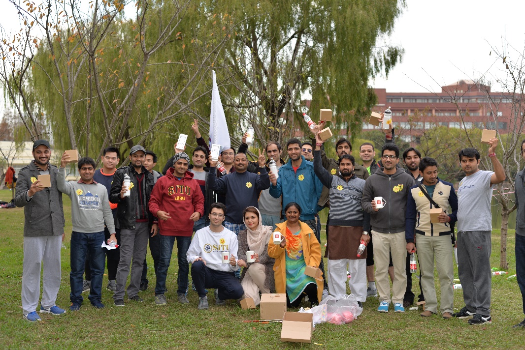 随着竞走正式开始,同学们边走边交流学习、生活经验,一路欢声笑语。抵达路线终点思源湖后,参与活动的中外学生通过扎气球的方式赢取了研会准备的纪念品。