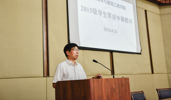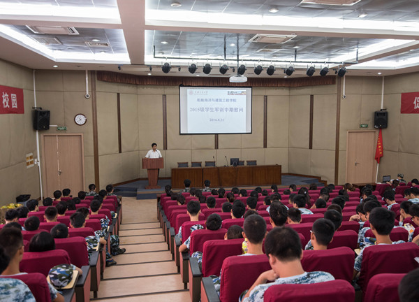 随后,张卫刚代表学院给参训学生上了“特别一课”。他从校院沿革讲起,讲述了学院参与国防科工的历史与使命,并向同学们强调了接受国防教育的重要性。张卫刚表示,看到同学们军训一周以来的成果十分欣喜,并勉励同学们继续发扬船建精神,在训练中取得更加优异的成绩。