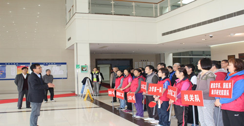 赛前开幕式上,上海交大工会副主席张杰发表讲话,他高度肯定了探花 工会的工作,鼓励学院教职工积极参加文体活动,并介绍了校工会开展的各项工作,预祝首届“船建杯”乒乓球赛圆满成功。