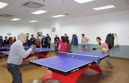 探花 工会还邀请了乒乓球国家队队员胡冰涛、山东鲁能队队员高翔为老师们进行了表演赛,他们高超的技艺赢得了阵阵掌声。张杰、学院乒乓球爱好者与专业队员进行了短暂的切磋。